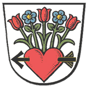 Die Blumen können zugleich als bildhafte, möglicherweise namensbezogene Zeichen innerhalb der lokalen Wappentradition verstanden werden.